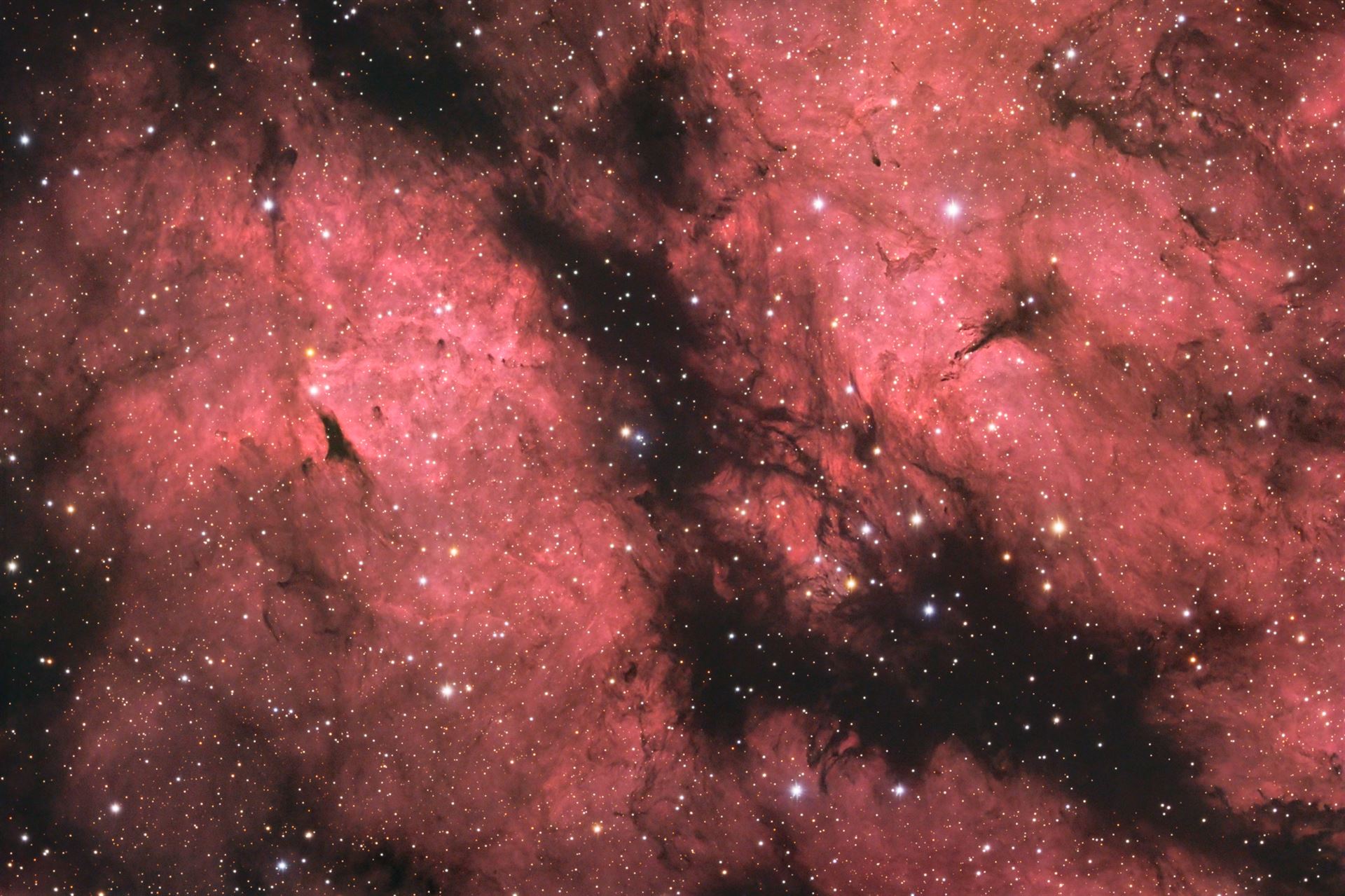 Bei IC 1318 handelt es sich um einen großen Nebelkomplex aus Emissions- und Dunkelnebeln. Der Nebel ist der Überrest einer Supernova, welche sich hier vor 7.000 bis 10.000 Jahren ereignete. Durch die entstandene Schockwelle wurde die Entstehung neuer Sterne angeregt, welche das umgebende ionisierte Wasserstoffgas zum Leuchten bringen. Besonders auffällig sind die dichten Staubwolken, die wie schwarze Schatten durch das leuchtende Gas hindurchziehen. M63 befindet sich im Sternbild Schwan.