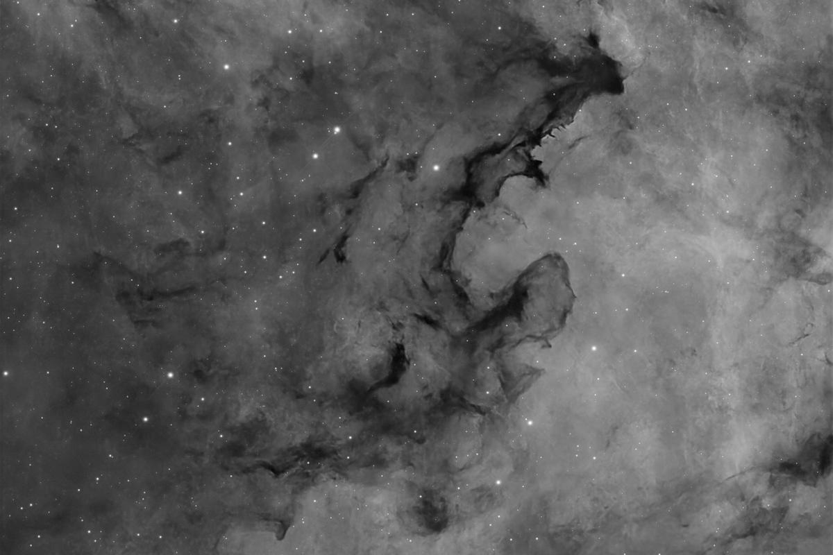 LDN 881 ist eine dichte Dunkelwolke im Sternbild Schwan, die das Licht dahinterliegender Sterne blockiert. Diese kalte, gas- und staubreiche Region ist ein idealer Ort für die Geburt neuer Sterne. LDN 881 gehört zum Lynds-Dunkelnebel-Katalog, der von Beverly Lynds erstellt wurde. In astronomischen Datenbanken wird er häufig unter der Bezeichnung "LDN 881" geführt. Dunkelnebel wie LDN 881 haben eine hohe Dichte an interstellarer Materie, die typischerweise in Bereichen von 100 bis 1000 Partikeln pro cm³ liegen kann. Die Temperaturen in diesen Nebeln sind sehr niedrig, oft im Bereich von 10 bis 20 Kelvin, was die Bildung von Molekülen begünstigt.