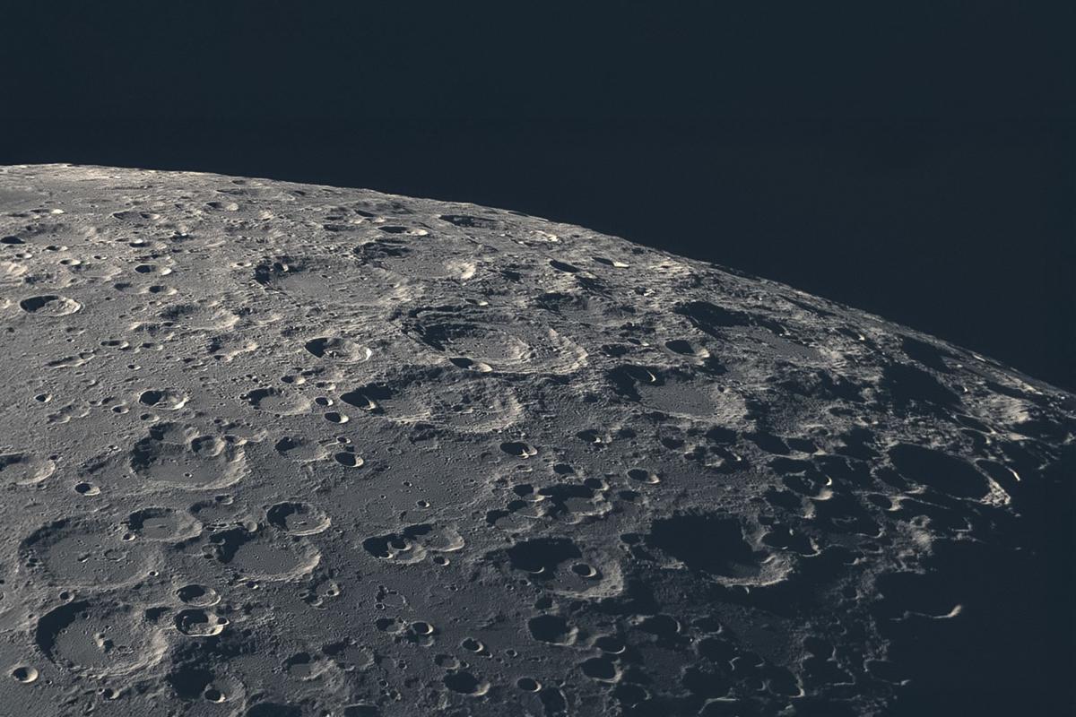 Der Mond ist mit seinem Durchmesser von 3475 km unser Begleiter in 384.000 km Entfernung. Seine Oberfläche ist übersät mit Kratern und Ebenen, Spuren alter Einschläge und uralter Vulkanaktivität. Der Mond umkreist die Erde in durchschnittlich 27 Tagen und zeigt uns stets nur eine Seite, da seine Rotation genau mit seiner Umlaufbahn um die Erde abgestimmt ist. Es gibt auf der Oberfläche keine Atmosphäre, die Temperaturen schwanken von 130° Celsius tags bis -160° nachts. Entstanden ist der Mond vermutlich durch die Kollision der Protoerde mit einem anderen, etwa marsgroßen Protoplaneten. Die scheinbare Größe der Mondscheibe von der Erde aus entspricht ca. 30‘, und damit ziemlich genau der Größe der Sonnenscheibe. Daher kann der Mond bei geeigneter Konstellation die Sonne teileweise oder vollständig verdecken und eine Sonnenfinsternis auslösen. Neuere Forschungen zeigen, dass sich unter der Oberfläche im Gestein eingebunden Wasser befindet. Außerdem gibt es Wassereis in den tiefen Kratern am Nord- und Südpol.